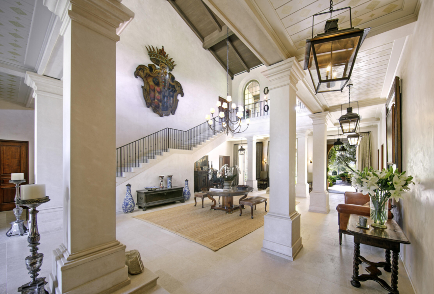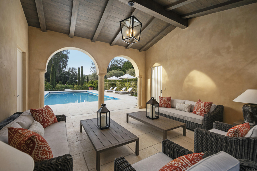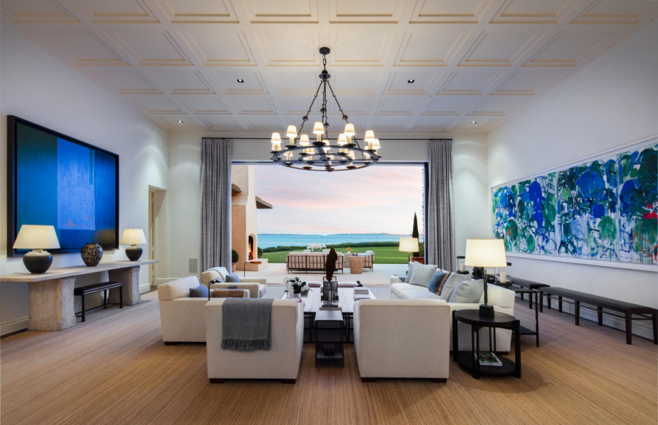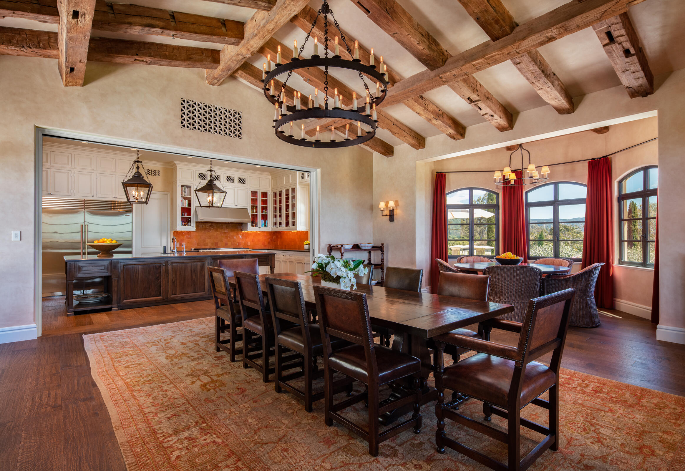 living in wine country, with scaled spaces opening to the home’s natural surroundings, including a private lake, gardens,